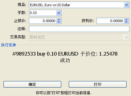 5、于价格 1.25478 下单成功。
